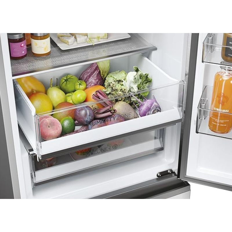 El Haier HTW5618ENMG es un frigorífico combi de 185 cm que combina diseño elegante en acero inoxidable, conectividad inteligente y una conservación eficiente de los alimentos. Con una capacidad total de 360 litros, sistema de Multi Air Flow y funciones como Super Cool y congelación rápida, garantiza una temperatura homogénea y un rendimiento óptimo durante todo el año.