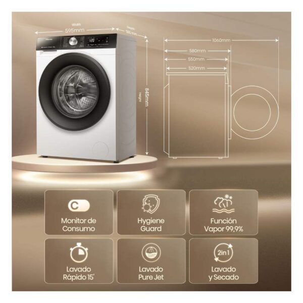 lavadora c/s cecotec 2166 8kg 1300rpm clase/a inverter
