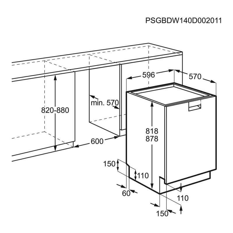 con una capacidad de 14 servicios y un diseño elegante en acero inoxidable.
