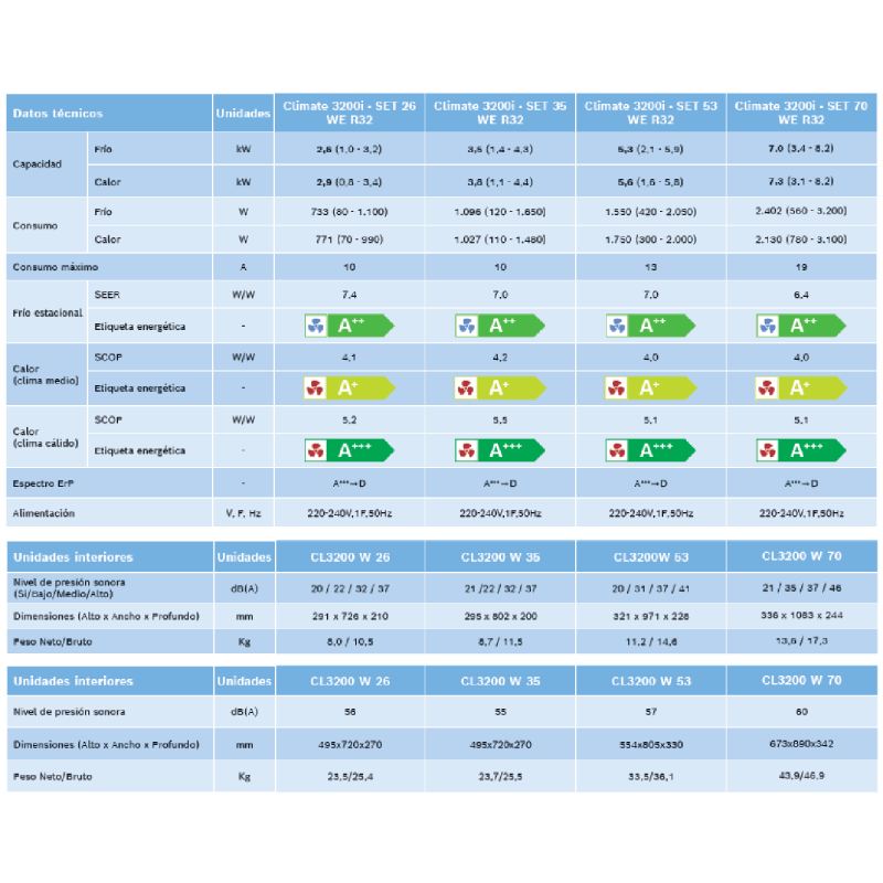Split Bosch Climate 3200i Set70we 6000f A++/a+++ - El Parque Electrodomésticos