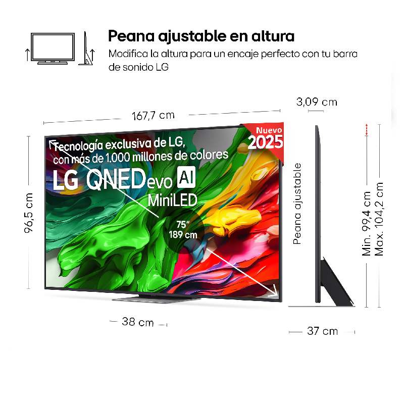 La LG 75QNED87A6B es perfecta para quienes buscan una pantalla de gran formato con tecnología avanzada y rendimiento gaming profesional. Una Smart TV completa, potente y preparada para ofrecer una experiencia audiovisual espectacular en cualquier contenido.